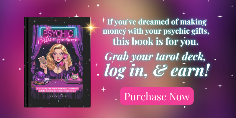 Ready to go deeper? Grab your copy of The Psychic Hotline Handbook, a 333-page guide that teaches you everything you need to know to build a soulful and successful career as a professional reader.